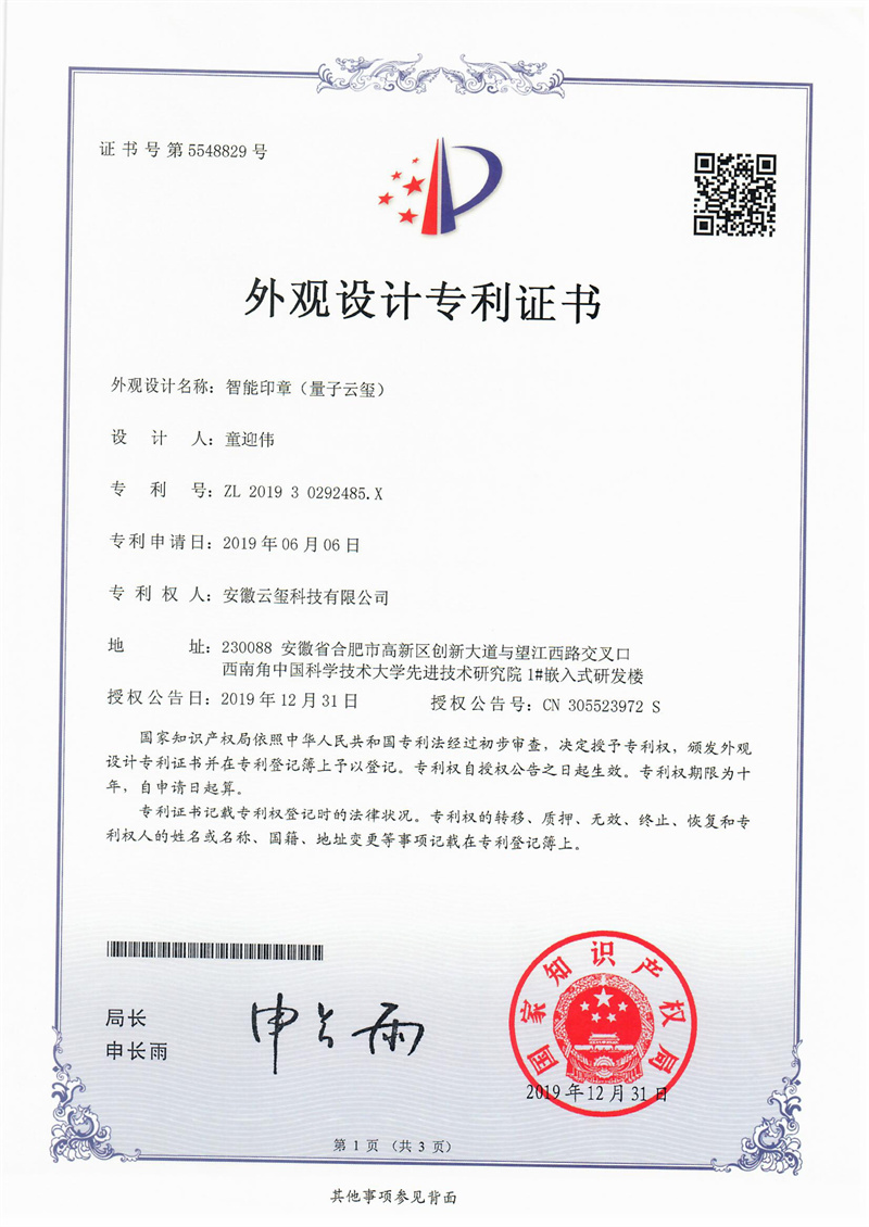 公司原創(chuàng)發(fā)明一體式智能印章技術(shù),引領(lǐng)國內(nèi)外新一代智能印簽創(chuàng)新變革。獲中日韓多項發(fā)明專利,徹底解決了實體印章和電子印簽管控的社會難題,獲國務(wù)院國資委全國央企熠星二等獎。公司聯(lián)合國家信息安全產(chǎn)品認(rèn)證中心、公安部三所、信通院、中國印章協(xié)會等,主導(dǎo)起草了行業(yè)首個智能印章安全認(rèn)證標(biāo)準(zhǔn)和智能印章產(chǎn)品標(biāo)準(zhǔn),引領(lǐng)了智能印章行業(yè)發(fā)展。