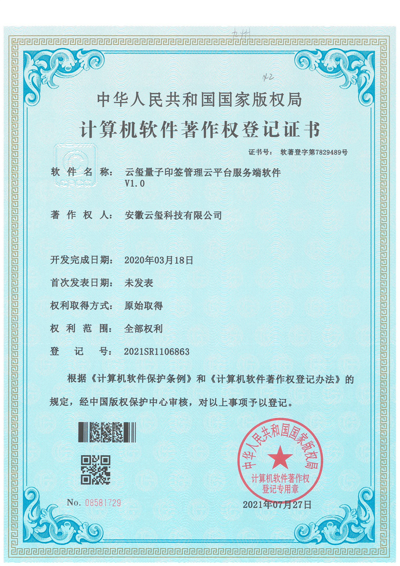 云璽量子印簽管理云平臺服務(wù)端軟件V1.0
